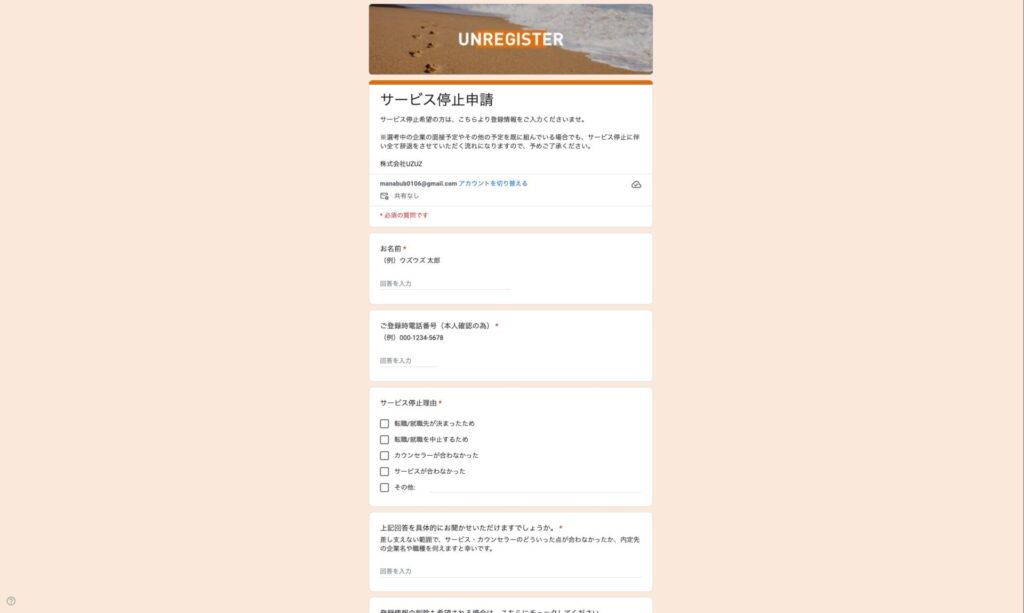 結論、UZUZ(ウズキャリ)の退会・解約はWEB上でサービス停止申請をすれば5分ほどで手続きが完了します。